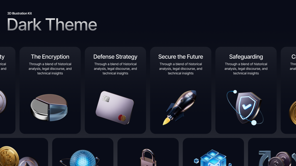 Introducing our new 3D illustration kit tailored for SaaS and Crypto products. Elevate your visual storytelling with a diverse collection of high-quality 3D illustrations designed specifically for the tech industry. Enhance your brand’s presence and create captivating visuals that bring your products to life in stunning detail with our comprehensive kit.