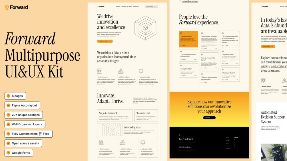 Whether you're launching a new product, promoting a service, or building a personal portfolio, our template provides the perfect foundation to create a stunning and effective landing page. Elevate your online presence with ease using our multipurpose template in Figma.